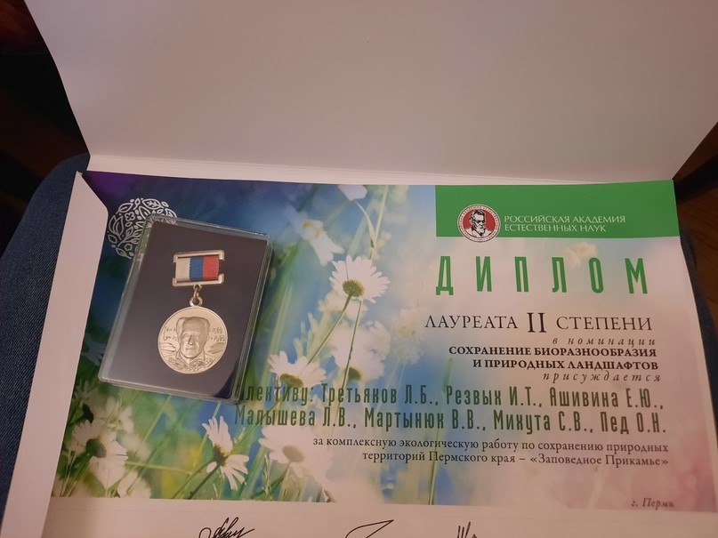 Он отметил, что это — результат совместной работы команды Минприроды Пермского края, ГБУ «Дирекция ООПТ Пермского края» и ОМС в номинации «Сохранение биоразнообразия и природных ландшафтов».