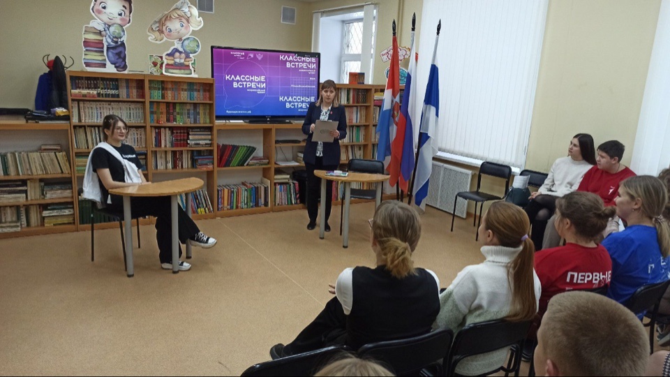 • «Классная встреча» с активистом городского Совета Первых – Ольгой Буровой. На ней ребята узнали о возможностях, предоставляемых Движением Первых детям и молодёжи, о губернаторском лагере и переменах в жизни активистов.